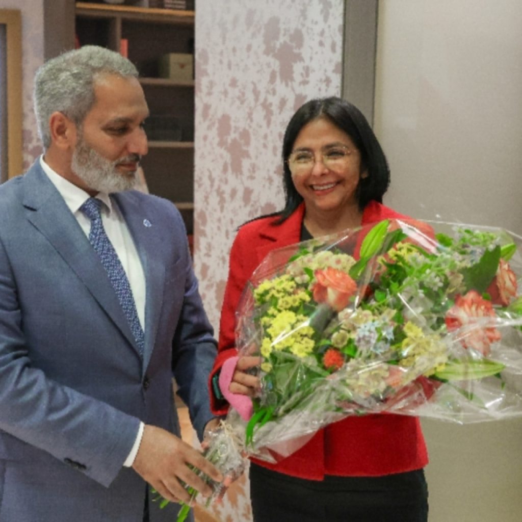 El secretario general de la Opep, Haitham Al Ghais, durante el recibimiento de la ministra de Hidrocarburos, Delcy Rodríguez, en Viena. Fotos Vicepresidencia de Venezuela