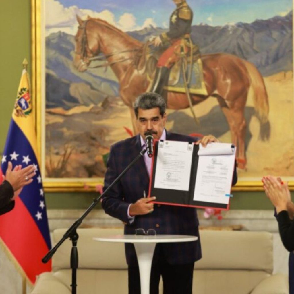 La medida la respalda la promulgación de la Ley del Comando para la Defensa de la Nación, que recibió, este martes 11 de noviembre, en el salón Sol del Perú del Palacio de Miraflores, de manos del presidente de la Asamblea Nacional, Jorge de Jesús Rodríguez Gómez, de la que dijo que será puesta en marcha “en tres niveles de gobierno: nacional, estadal y municipal”.