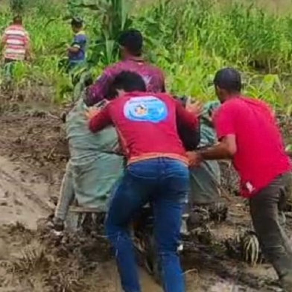 Entre vecinos también se están apoyando en realizar caminos improvisados para que los transeúntes y motociclistas pasen en dirección a La Victoria o para El Nula a través de un sembradío de maíz, que incluso parte de esta cosecha se la llevó el río.