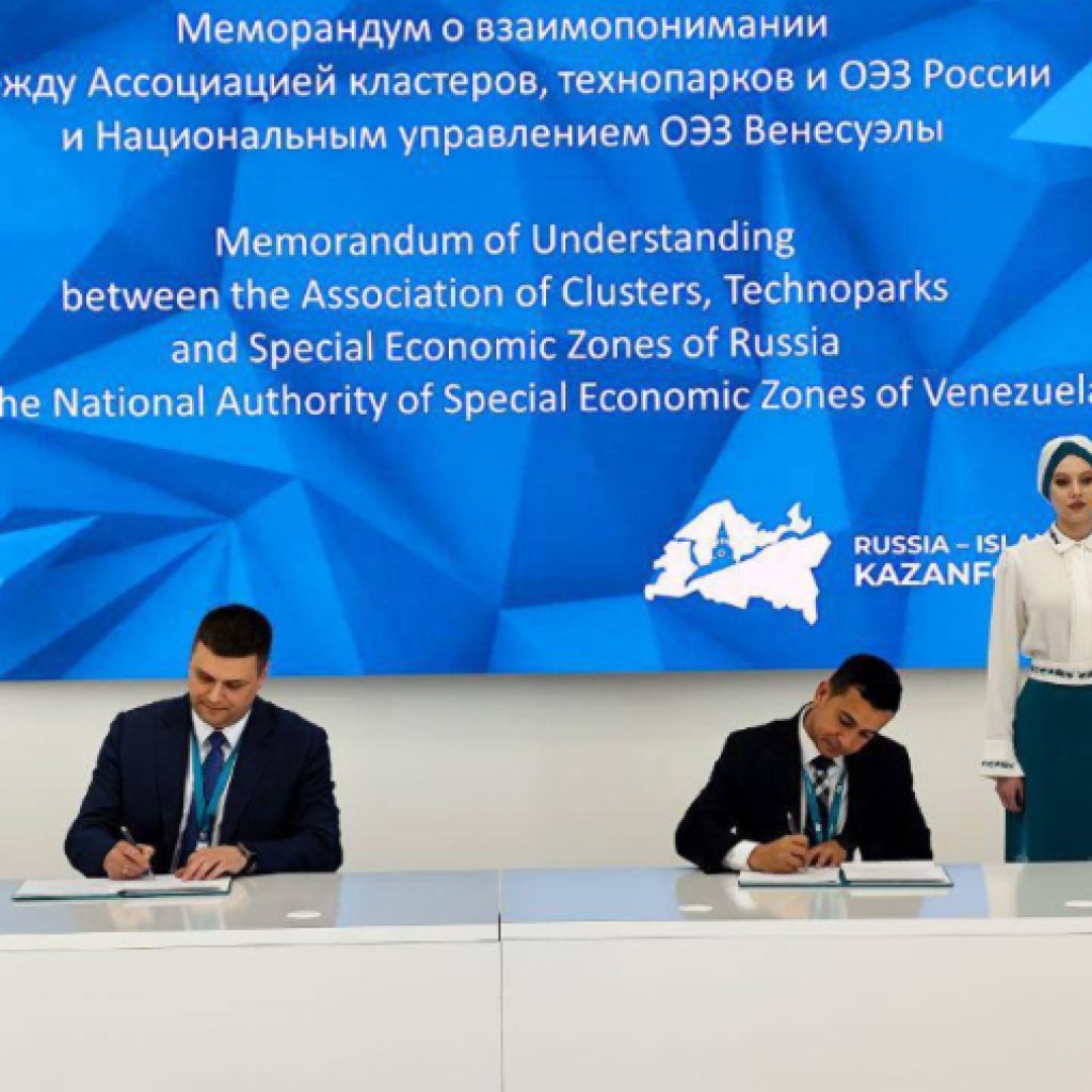 El acuerdo suscrito en la ciudad rusa de Kazán por el superintendente Nacional de ZEE de Venezuela, Johann Álvarez, y el director de la Asociación de Clústeres de Rusia, Mikhail Labudin, buscará crear un grupo de trabajo conjunto para impulsar proyectos productivos, localización de industrias y acceso de productos rusos a mercados latinoamericanos.
