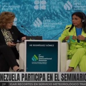 La vicepresidenta y ministra de Hidrocarburos, Delcy Rodríguez, durante el 9º Seminario Internacional de la OPEP, en Viena, Austria, alertó que el país ha sido