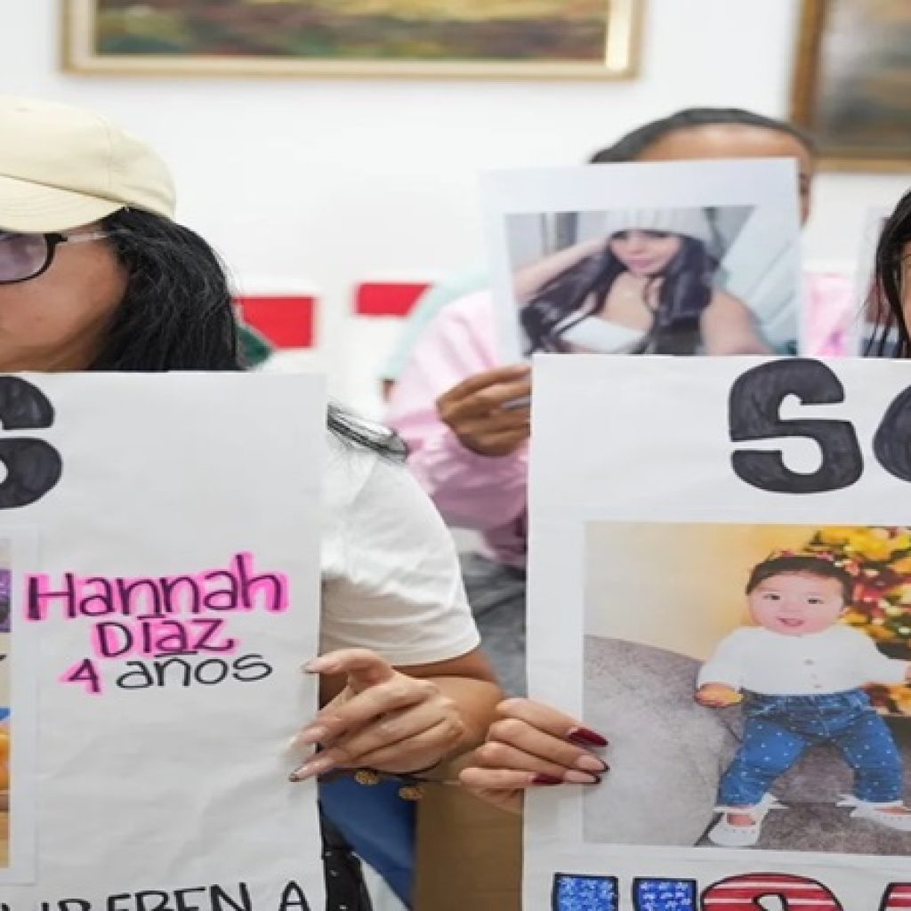 “Nosotros aquí los queremos de vuelta. No queremos que les pasa nada malo a nuestros niños allá, porque no sabemos lo qué pasa con nuestros niños, en manos de quién están, no sabemos si los niños están bien cuidados si los niños comen”, expresó con voz temblorosa, Sintya Cáceres, quien clamó a la conciencia de Trump.