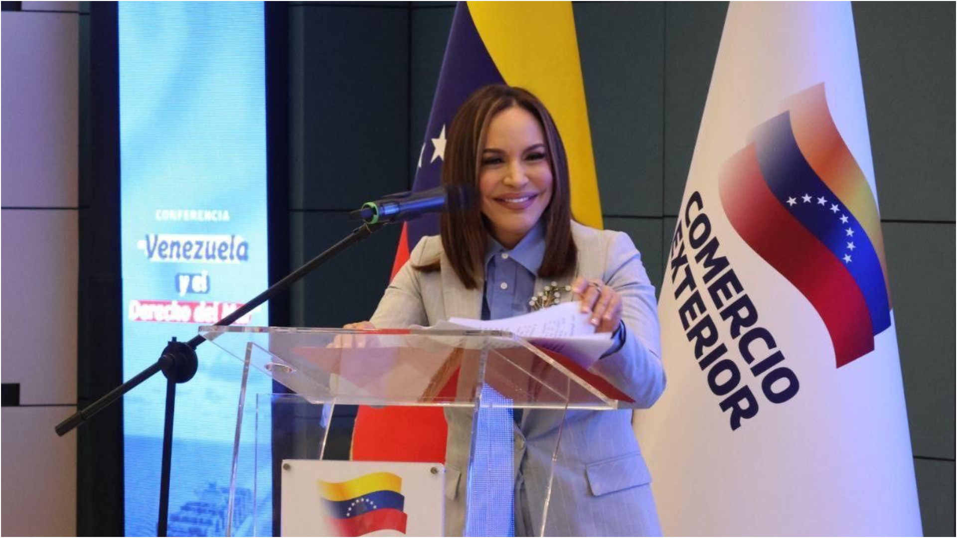La conferencia estuvo acompañada por la viceministra de Promoción de Exportaciones, Daniella Cabello; el viceministro de Política Comercial Internacional, Johann Álvarez; el diputado Juan Romero, el equipo del Centro Nacional de Estudios Históricos, representantes del sector empresarial y voceros de comunas.